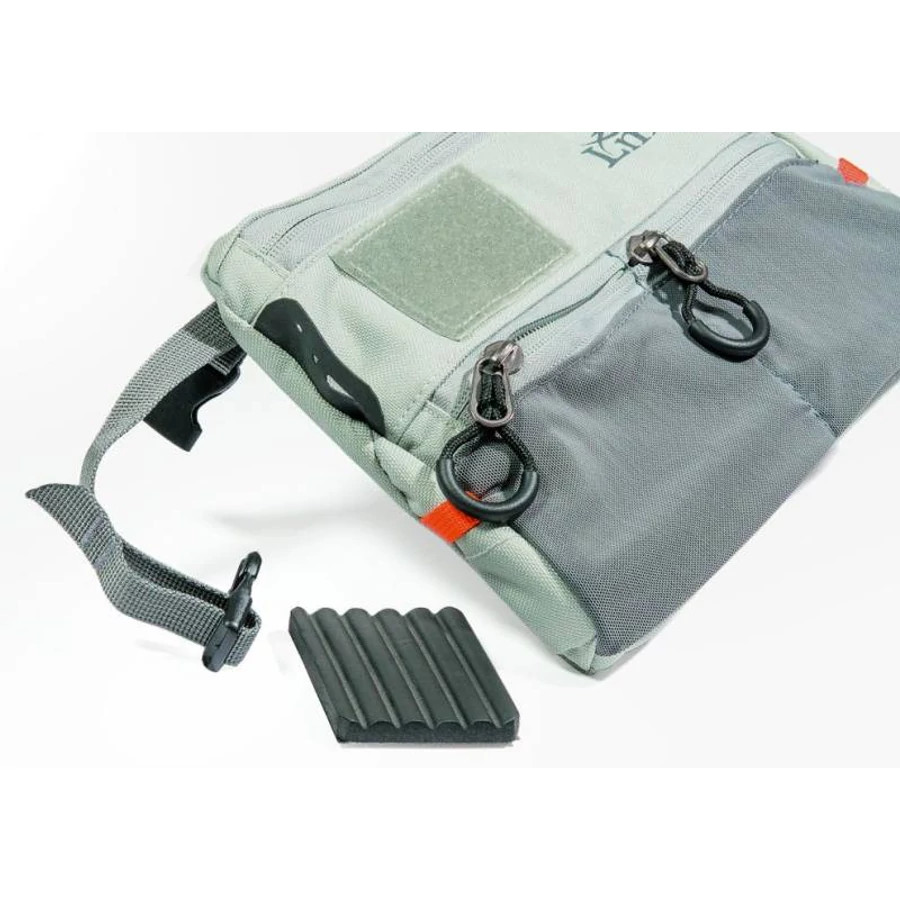 Mała torba, którą można przymocować do szelek spodniobutów, ale może też wisieć na pasku od spodni. Z przodu torby znajduje się piankowa poduszka na haczyki i muchy. Duża, zapinana na zamek centralna kieszeń, z dwoma mniejszymi z przodu i jedną zapinaną na zamek kieszenią z tyłu. Zamki błyskawiczne na torbie można łatwo obsługiwać jedną ręką. Wyposażona w logo Loomis and Franklin.