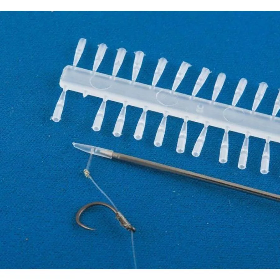 Użycie jest proste i logiczne:. Zaczep pętlę włosa o wycięcie stopera. Nałóż stoper na dołączoną igłę. Przeciągnij przez przynętę, a następnie wyjmij igłę. Na koniec obróć stoper poprzecznie, aby stabilnie zamocować przynętę.