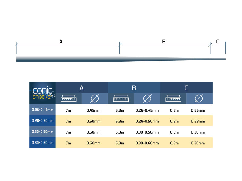 Delphin Stożkowy przypon rzutowy Conic SHOCKER / 6x13m 0,26mm-0,45mm szczegółowy opis