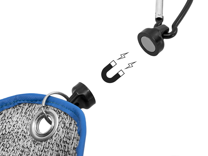 Cała powierzchnia rękawicy jest gumowana grubą warstwą, aby wytrzymać zęby nawet największych słodkowodnych drapieżników. Aby przyspieszyć użytkowanie, rękawica jest wyposażona w magnes, który znajduje się w zestawie. Jedna część magnesu mocowana jest do spodni lub boku torby, a druga pozostaje bezpośrednio na rękawicy. Podczas użytkowania wystarczy wsunąć dłoń w rękawicę, nacisnąć, a magnes samoczynnie się odłączy. Zestaw zawiera jedną rękawicę na prawą rękę!
