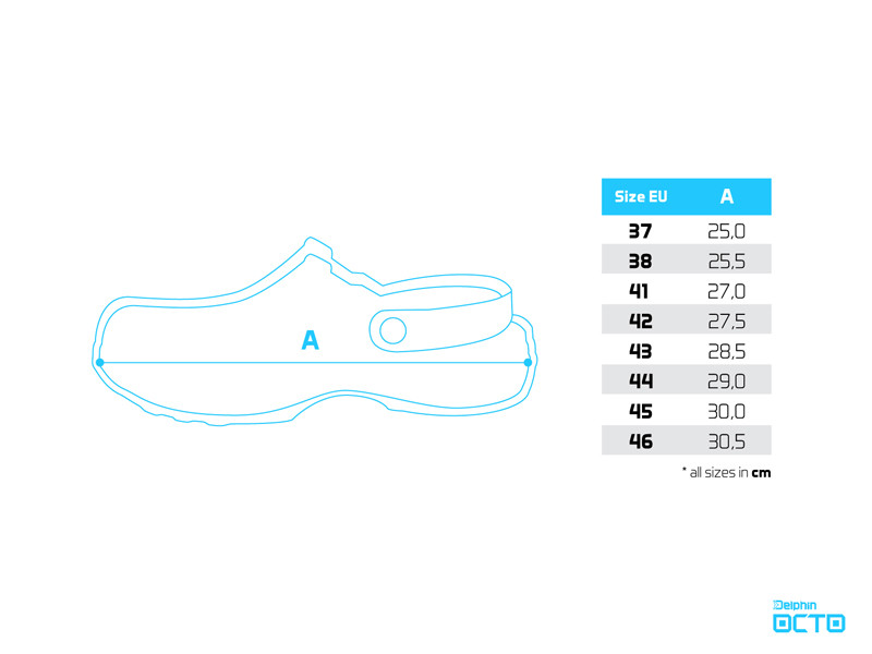 Az OCTO név eredetének története rendkívül érdekes. A polip csápjainak stilizált alakjával terveztük, amelyek kiváló tapadást biztosítanak minden körülmény között. A polip angolul OCTOpus, latinul pedig OCTOpoda – ez a két szó inspirálta a tervezést és az elnevezést, amit röviden OCTO-ként rögzítettünk. A másik kifinomult részlet a nagy méretű oldalnyílások, amelyek elsősorban a szellőzést szolgálják. Szándékosan nem a talp szintjén helyezkednek el, ahogyan általában szokásos, hanem valamivel magasabban. Ez azért fontos, mert segít megakadályozni, hogy homok vagy kavicsok egyszerűen bejussanak a papucs és a talp közé, különösen akkor, amikor a parton vagy sekély vízben tartózkodsz. Tehát a lábadat maximálisan védettnek érezheted. Emellett az alsó részen található sűrű perforáció is hozzájárul a szellőzéshez. Az egyik oldalon a Delphin logóból származó D betű szimbólumot használtuk, a másik oldalon pedig az O betű, ami az OCTO név kezdőbetűje. A finom textúra a talp felszínén, amely a tintahal bőrét idézi, tovább fokozza az összhatást. Az EVA anyagnak köszönhetően a papucsok rendkívül könnyűek, tartósak és lebegnek. Természetesen a modellhez tartozik sarokpánt is, amely segít rögzíteni a lábat, különösen egyenetlen vagy lejtős terepen való használatkor.