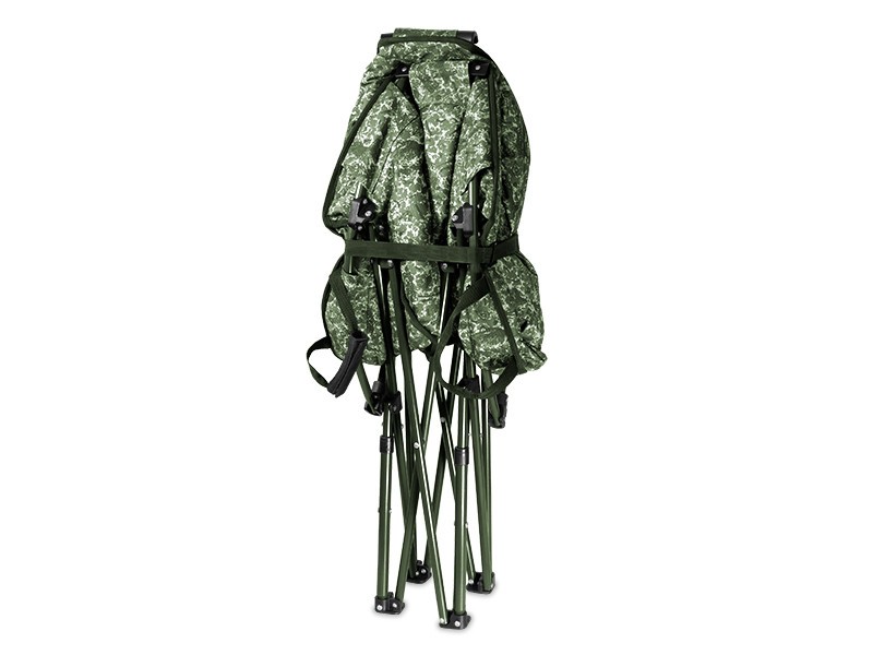 Powierzchnia krzesła wykonana jest z wytrzymałego materiału 600D, pokrytego naszym własnym kamuflażem C2G. Gruba i miękka wyściółka zapewnia komfort.