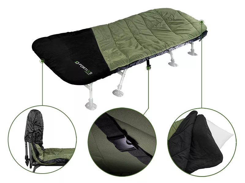 Ten śpiwór posiada rękawy mocujące do łóżka na obu końcach oraz pasek z mocną klamrą pośrodku, co zapobiega skręcaniu się FORTIX.