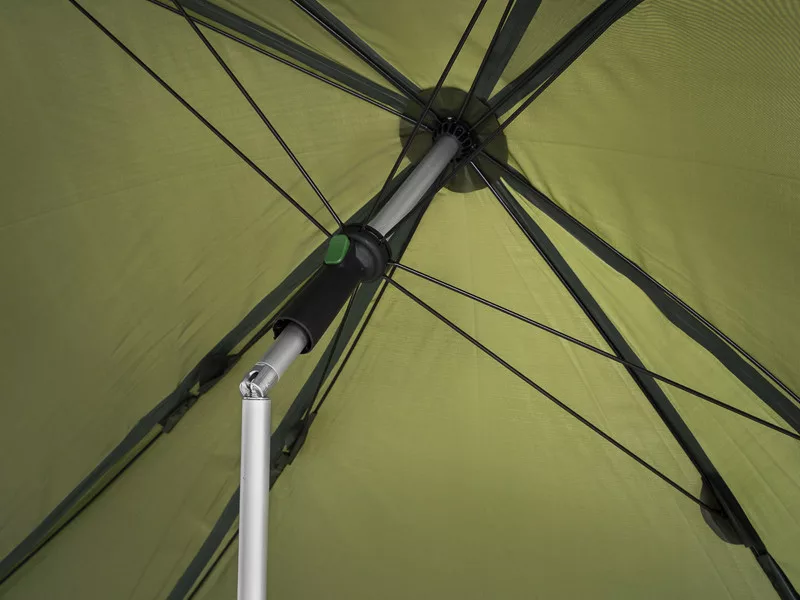 Wysokość i kąt nachylenia parasola są regulowane w zależności od potrzeb, co ułatwia jego mocowanie nawet w trudnym terenie.