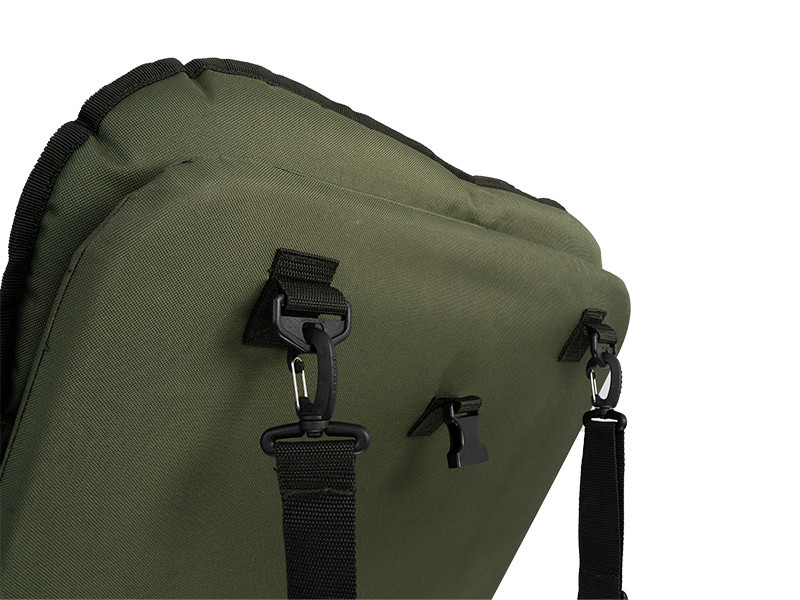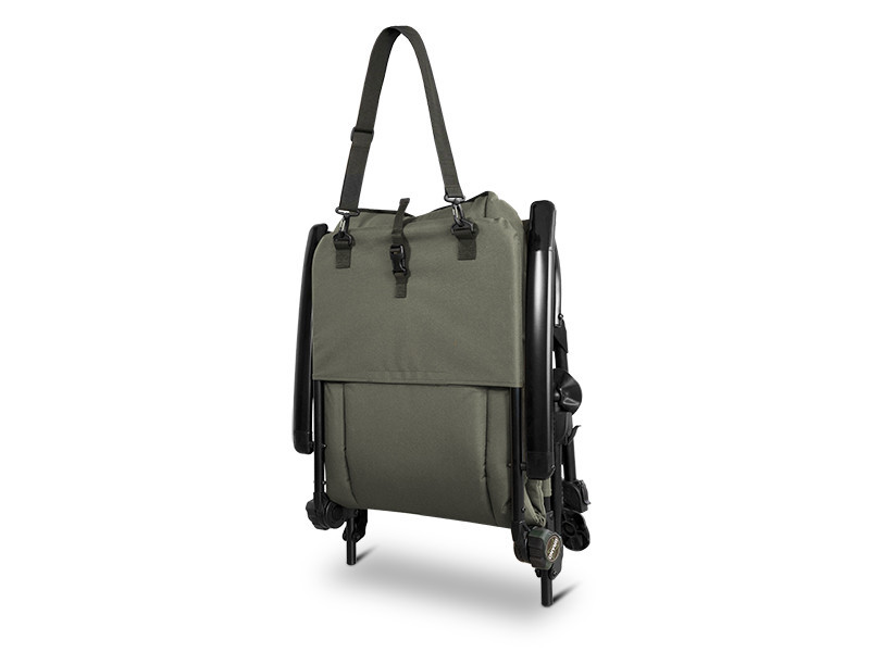 Solidna, spawana konstrukcja stalowa zapewnia wytrzymałość, a szeroko regulowane nogi zapewniają dużą stabilność, co szczególnie docenią wędkarze o większej wadze. Mimo solidnej budowy krzesło jest stosunkowo lekkie. Dla łatwego transportu krzesło wyposażone jest w odpinany pasek, który można zawiesić na ramieniu, dzięki czemu ręce są wolne na inne akcesoria wędkarskie. Dodatkowo krzesło posiada plastikowy klips, który blokuje krzesło w pozycji podczas transportu i zapobiega jego niepożądanemu otwarciu.