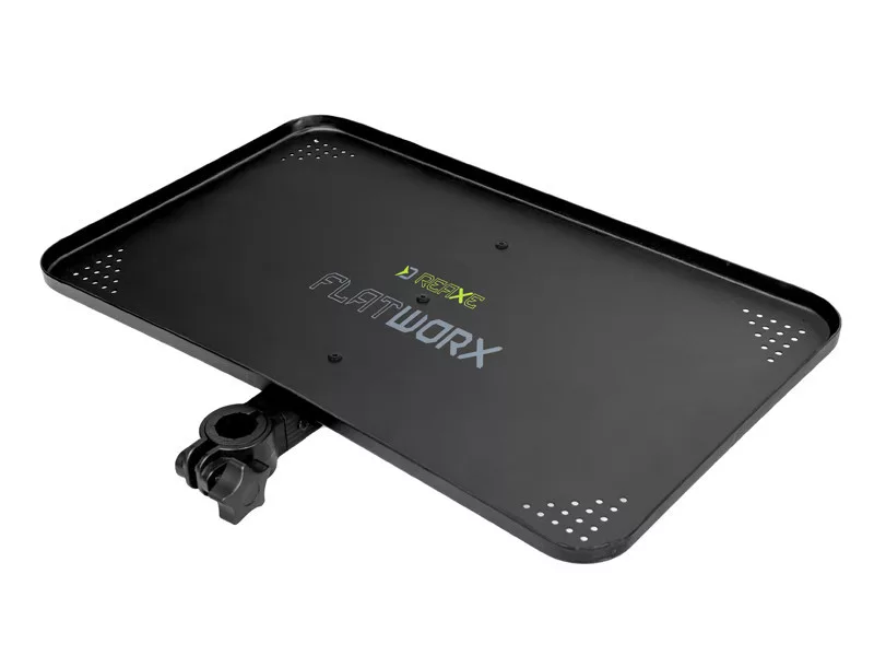 Flatworx to nieoceniony pomocnik do wiązania zestawów, przygotowywania zanęt, lub po prostu do przechowywania niezbędnych narzędzi podczas wędkowania, które będą dosłownie zawsze pod ręką. Podniesione krawędzie na obwodzie zapobiegają spadaniu drobnych przedmiotów na ziemię. Rogi tacy są zaokrąglone, co zapobiega ewentualnym nieprzyjemnym urazom od ostrych narożników. Ponadto, w każdym rogu znajduje się kilka otworów, dzięki czemu masz pewność, że w przypadku deszczu lub rozlania płynu, płyn nie pozostanie na tacy, lecz gwarantowanie spłynie z niej bez konieczności zdejmowania tacy z krzesła.