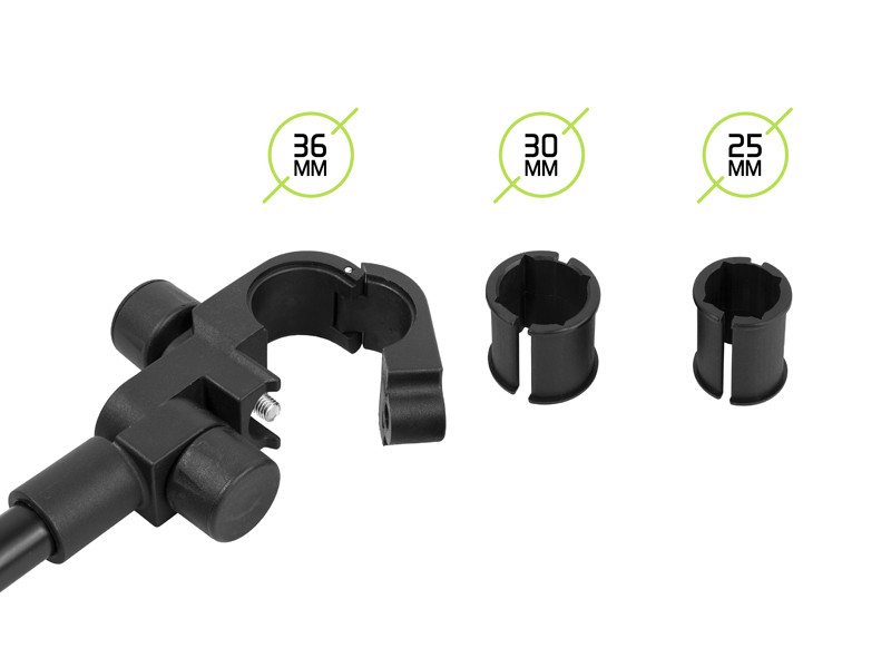 » Kompatybilne z niemal każdym sprzętem wędkarskim i krzesłem dzięki adapterom 25, 30 i 36 mm