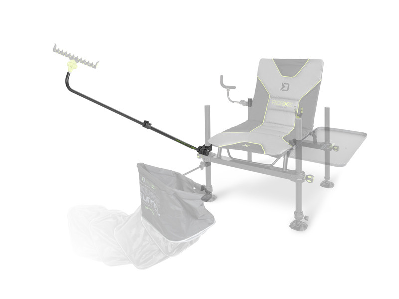 AngleARM to długie ramię feederowe, na którym można umieścić wędkę podczas łowienia. Posiada uniwersalny gwint, który jest kompatybilny z większością standardowych uchwytów na wędki. Mocowanie odbywa się za pomocą plastikowych adapterów o różnych średnicach - 25, 30 lub 36 mm. Dzięki temu jest kompatybilne z niemal wszystkimi dostępnymi na rynku krzesłami.