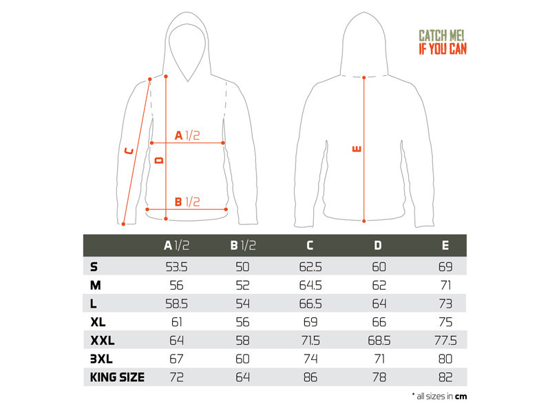 Seria CATCH ME IF YOU CAN, prezentująca wzór karpia, to nie tylko wyróżniający się element garderoby wędkarskiej. Motyw karpia otacza dolną część tułowia, pojawiając się jako szkic lub obraz, zachowując jednocześnie wszystkie istotne detale. Ryba zbliża się do garści kulek proteinowych – to dokładnie ten moment, na który czekają wędkarze. Bluza z kapturem jest w ciemnozielonym kolorze, z efektowną pomarańczową i jasnozieloną grafiką.