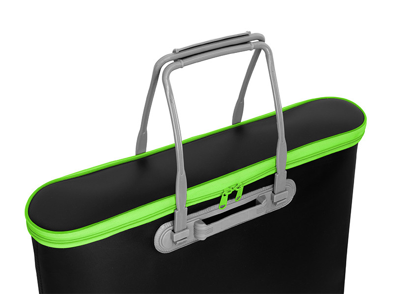 A táska anyaga 100%-ban vízálló EVA (etilén-vinil-acetát), amely megakadályozza, hogy a víz kifolyjon a táskából, így biztonságosan szállíthatod a nedves haltartókat és merítőháló fejeket anélkül, hogy aggódnod kellene a többi felszerelésed elázása miatt. Az EVA anyag különleges tulajdonsága, hogy nem szívja magába a szagokat, így a táska zárt állapotában a kellemetlen szagok sem szivárognak ki, ami rendkívül praktikus a horgászat során.