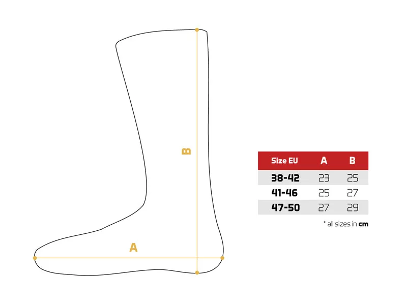 Bardzo ciepłe skarpety termiczne, zaprojektowane specjalnie na miesiące zimowe, do użytku poniżej zera. Materiał ma wysoką gęstość, doskonałe właściwości termoizolacyjne i jest niezwykle elastyczny, dzięki czemu wygodnie dopasowuje się do stopy. Elastyczny ściągacz w cholewce zapewnia lepsze trzymanie i utrzymuje skarpetę na żądanej wysokości.