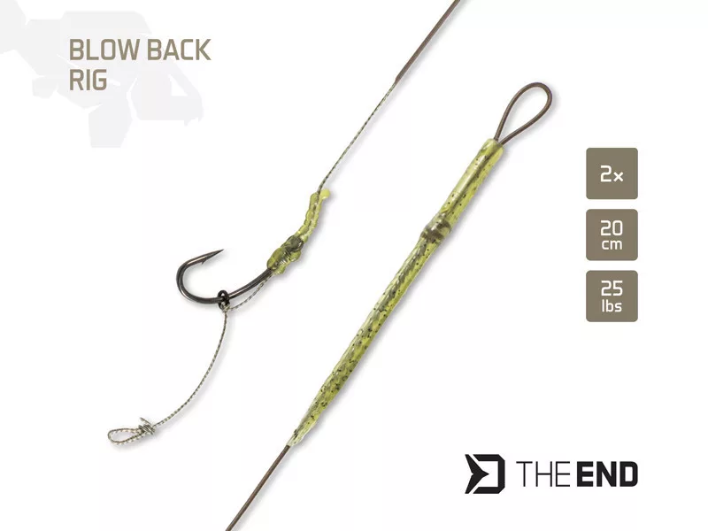 Delphin The End Blow Back Rig to profesjonalnie skomponowany, gotowy do użycia przypon karpiowy, zaprojektowany do najwyższej jakości prezentacji przynęt. Ten typ zestawu jest uznany na całym świecie za swoją skuteczność, zwłaszcza w przypadku tonących kulek proteinowych oraz zestawów typu „bałwanek” składających się z kombinacji przynęt tonących i pływających. Sercem zestawu jest mały metalowy pierścień umieszczony na trzonku haczyka, który umożliwia swobodny ruch przynęty. Kiedy karp zasysa przynętę, pierścień zsuwa się po trzonku, zapewniając natychmiastowe i idealne obracanie się haczyka, co gwarantuje pewne zacięcie w dolnej części pyska ryby.
