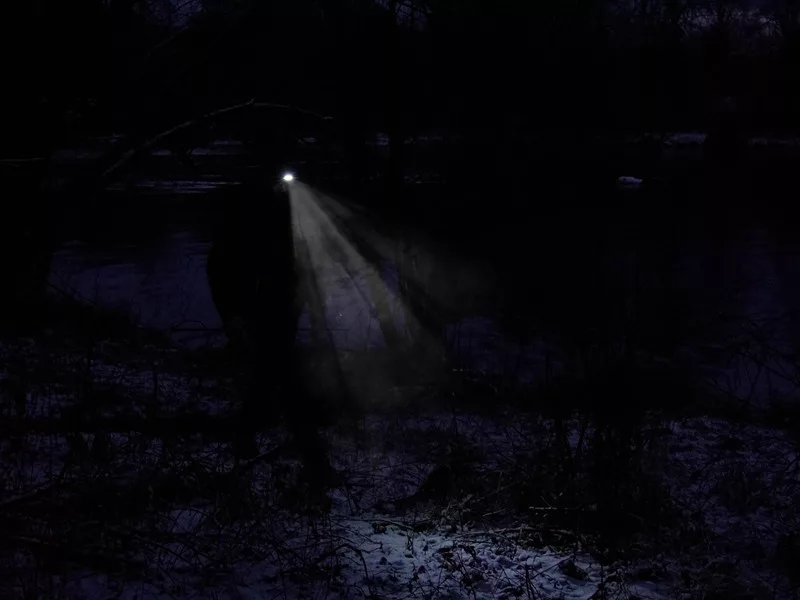 Praktyczna czapka baseballowa w kamuflażu z lampką LED w daszku, co jest przydatnym elementem ubioru dla każdego pasjonującego wędkarza.