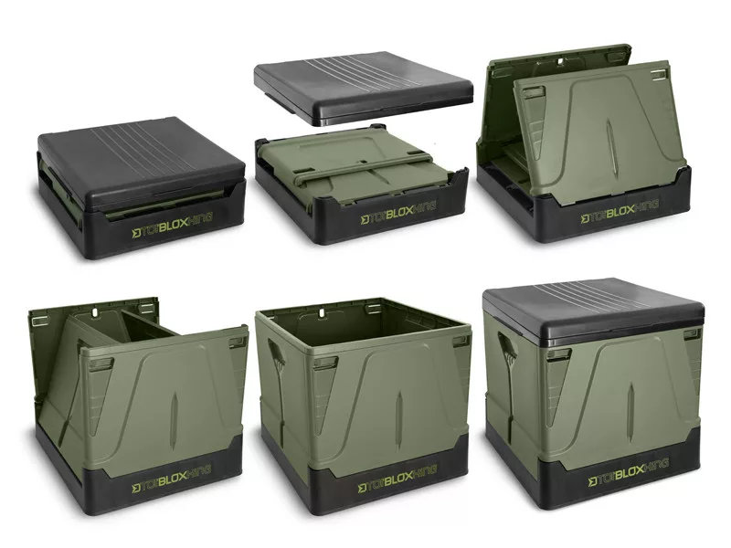 Delphin ToiBLOX posiada prostą, składaną konstrukcję, którą można złożyć i rozłożyć w kilka chwil. Po złożeniu zajmuje minimalną ilość miejsca w sprzęcie wędkarskim. Materiały użyte do produkcji są wysoce odporne na uszkodzenia mechaniczne i czynniki zewnętrzne. Dzięki sprytnie zaprojektowanej, solidnej konstrukcji, ToiBLOX może być używany nawet przez cięższych wędkarzy. Konstrukcja toalety jest wykonana w zielono-czarnej kombinacji kolorystycznej, która płynnie wtapia się w naturalne otoczenie i pasuje do sprzętu wędkarskiego.