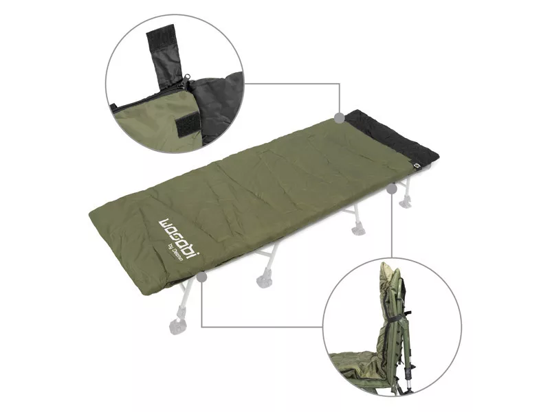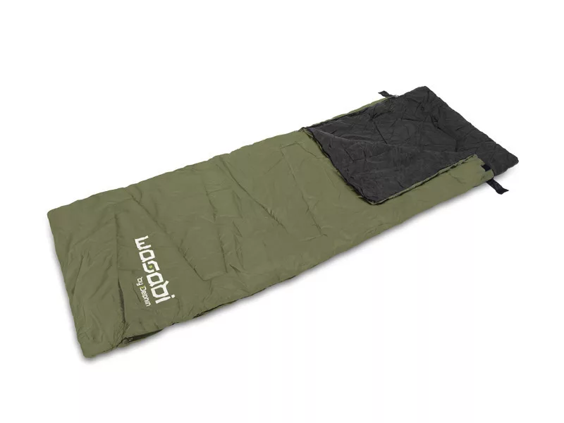 The green and black color combination ensures perfect harmony with fishing equipment and matches other products in the WASABI series. The sleeping bag comes with a practical carry bag.