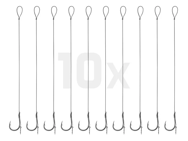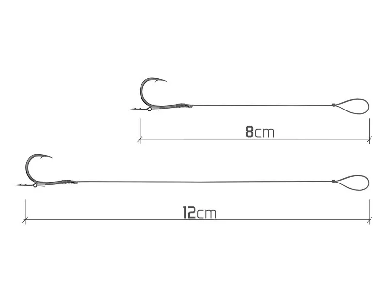 Miękkie opadanie delikatnej plecionki, służącej jako materiał przyponowy, sprawia, że ruch przynęty na dnie wydaje się rybom całkowicie naturalny. Ten elastyczny materiał nie wzbudza podejrzeń u żerujących osobników, ponieważ idealnie wtapia się w podwodne środowisko. Przypony w dziesięcioelementowym opakowaniu mają długość 8 centymetrów, a na ich końcu znajduje się haczyk Chinu w rozmiarze 8, wyjątkowo ostry. Kombinacja kształtów Turner i Chinu gwarantuje, że haczyk zaciśnie się natychmiast i pewnie po kontakcie, a specjalne wykończenie pomaga uniknąć tego, by ryba spadła z zestawu podczas holu.