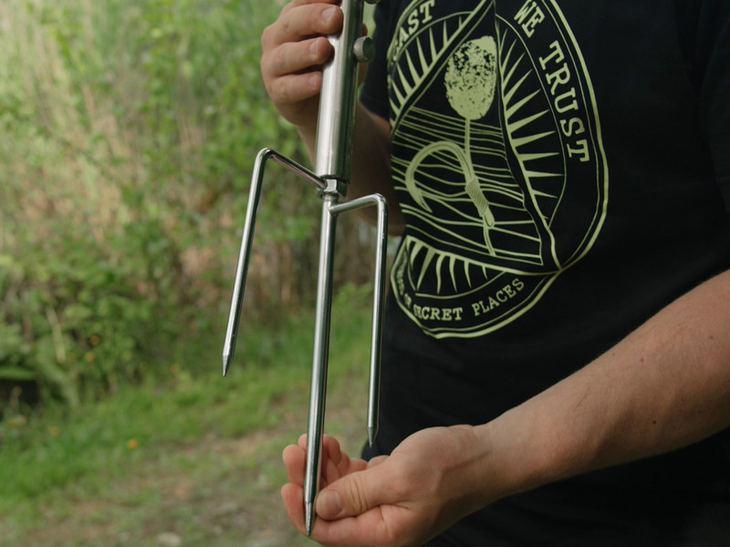 Trzy szpile o różnej długości zapewniają doskonałą stabilność, dzięki czemu można go bezpiecznie używać nawet przy silnym wietrze, na miękkim lub twardym gruncie. Pozycja szpil może być dostosowana do warunków terenowych, a jedna z nich jest wyposażona w nakrętkę mocującą, która umożliwia łatwą regulację lub demontaż. Konstrukcja jest praktyczna i mocna: dzięki powierzchni dociskowej o średnicy 6 cm uchwyt można łatwo wbić w ziemię bez użycia dodatkowych narzędzi.