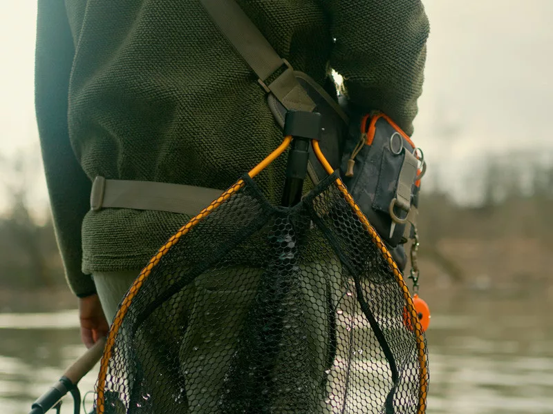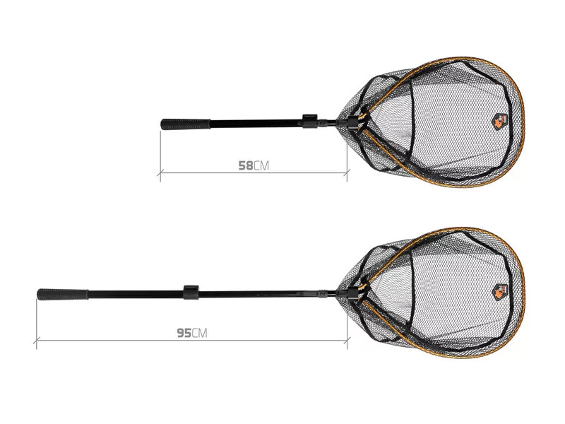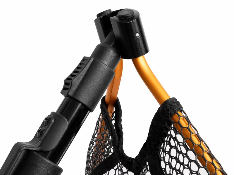 Teleskopowa rękojeść SpinTele-145 jest regulowana w zakresie od 58 do 95 cm, co pozwala na bezpieczne podbieranie w trudno dostępnych miejscach – na stromych brzegach, w gęstej roślinności. Po złożeniu jest niezwykle kompaktowy, łatwo mieści się w plecaku lub mniejszej torbie. Praktyczność zwiększa wbudowany karabinek, który umożliwia łatwe mocowanie podbieraka do paska lub plecaka.