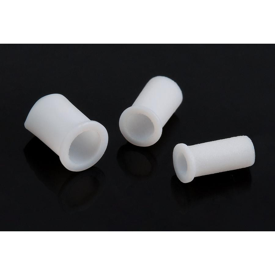 Zestaw 3-częściowych wewnętrznych tulejek z teflonu do wędek typu 'rakós' lub wędek szczytowych z gumką. To małe, przydatne akcesorium chroni gumkę na końcu wędki podczas wysuwania. Kołnierz tulejki ma podwójną rolę. Po pierwsze, stabilniej leży w korpusie wędki, a po drugie, chroni gumkę nawet wtedy, gdy gumka znajduje się pod mniejszym kątem względem osi wzdłużnej wędki. W ten sposób żywotność gumki typu 'rakós' drastycznie wzrasta.