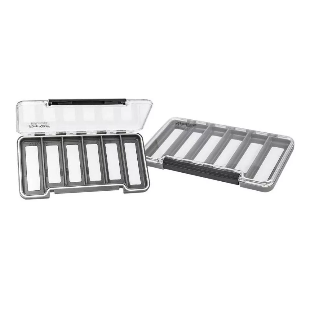 Sześć oddzielnych przegródek umożliwia segregowanie przynęt według koloru, typu lub rozmiaru, co może być bardzo pomocne przy szybkim zmienianiu przynęt, zwłaszcza podczas spinningowania. Dodatkową zaletą przezroczystej pokrywy jest to, że można łatwo zobaczyć jej zawartość bez otwierania pudełka, co pozwala w mgnieniu oka znaleźć odpowiednie przynęty bez długiego szukania. Dzięki magnetycznej konstrukcji nawet najmniejsze główki jigowe i małe kawałki wobblerów pozostają bezpiecznie na swoim miejscu, nawet jeśli pudełko nagle się poruszy lub odwróci do góry nogami. Ze względu na cienki, płaski kształt pudełko z łatwością mieści się w kieszeni torby lub kurtki, dzięki czemu jest zawsze pod ręką, gdy go potrzebujesz.