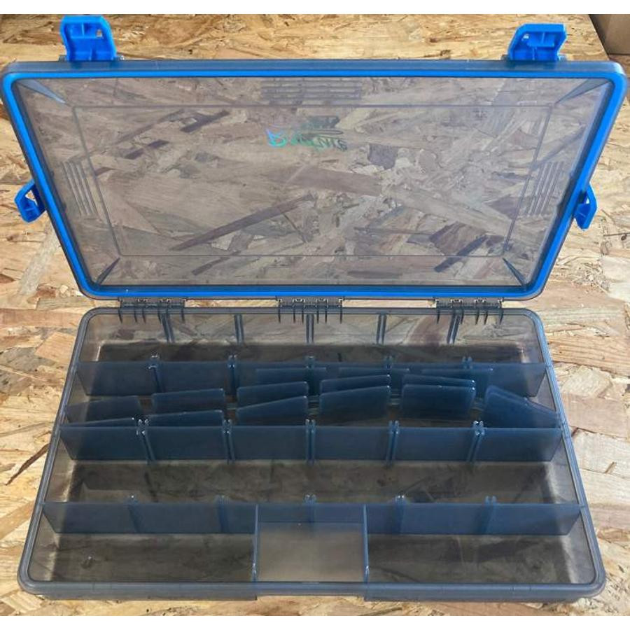 Bezpieczne pudełko na sztuczne przynęty, zamykane w czterech punktach. Zgodnie z dobrze ugruntowanymi tradycjami, wewnętrzny układ można swobodnie konfigurować. Dzięki przezroczystej pokrywie zawartość jest widoczna w mgnieniu oka.