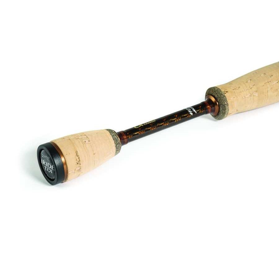Rękojeść wędki jest dzielona, wykonana z najwyższej klasy naturalnego korka, z eleganckim logo Iride Native na końcu. Zintegrowany z rękojeścią uchwyt kołowrotka ma bardzo cienką konstrukcję, z ultralekkimi karbonowymi mocowaniami i hybrydowym korpusem z korka. Na złączach sekcji znajdują się znaczniki dopasowania oraz kod identyfikacyjny części zamiennych.