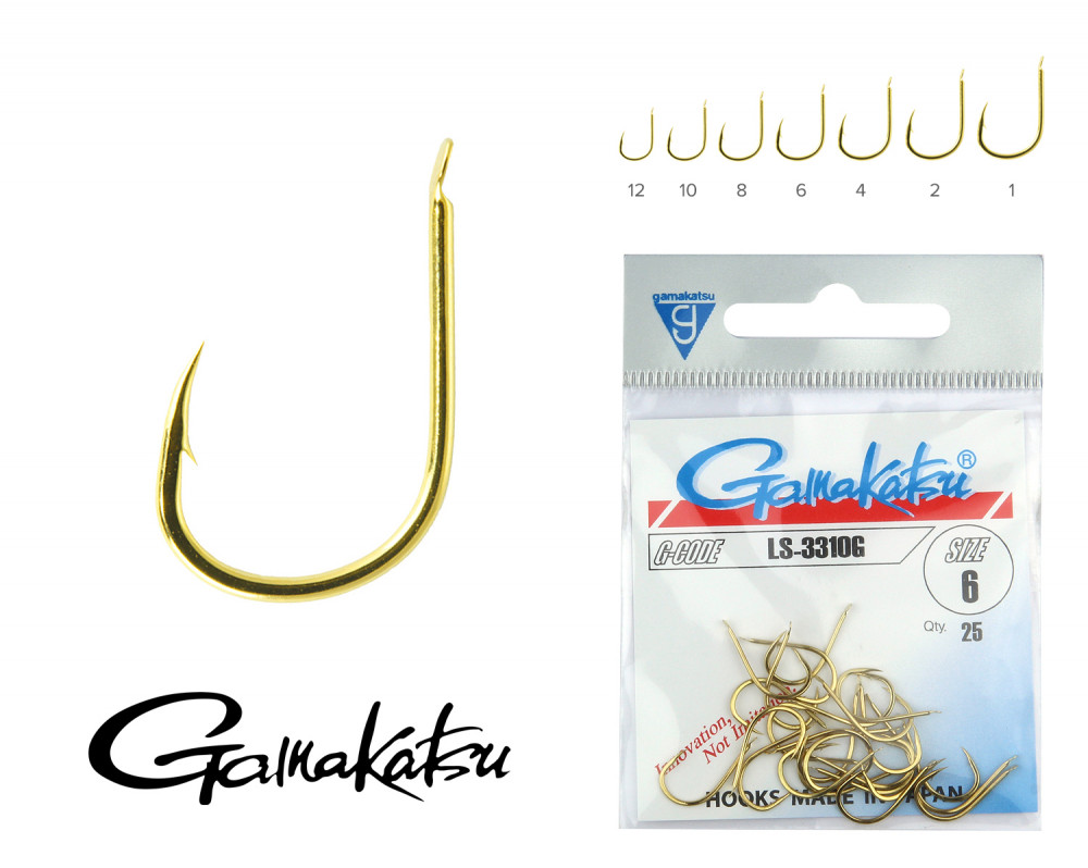 Gamakatsu LS-3310G/010 Złoty 10 25szt/opakowanie Z łopatką Z zadziorem Haczyk karpiowy