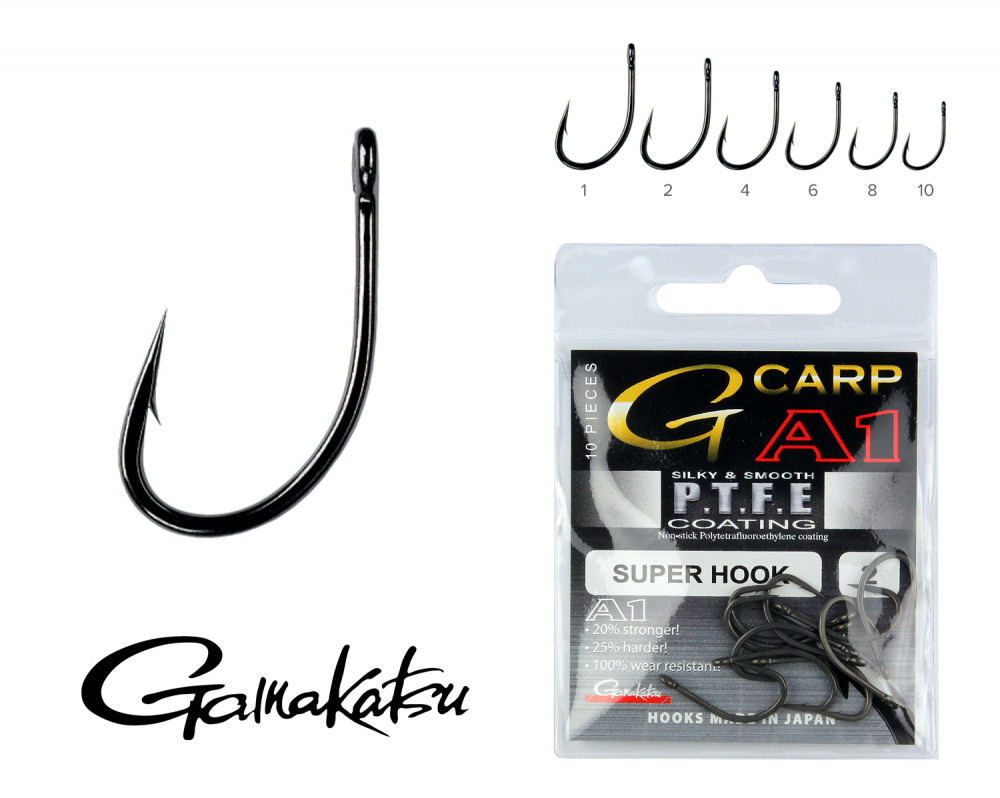 Gamakatsu A1 Teflon Super Hook Czarny 6 10 sztuk/opakowanie Z oczkiem Z zadziorem Haczyk karpiowy
