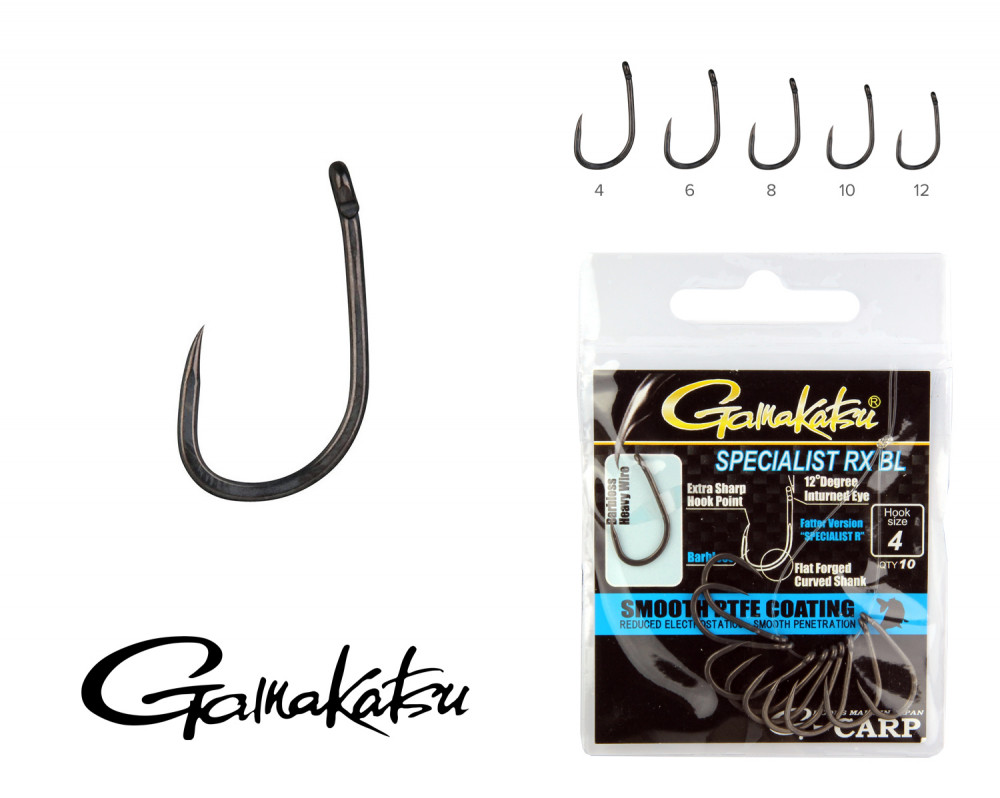 Gamakatsu G-Carp Specialist RX BL Czarny 8 10szt/opakowanie Haczyk karpiowy bezzadziorowy z oczkiem