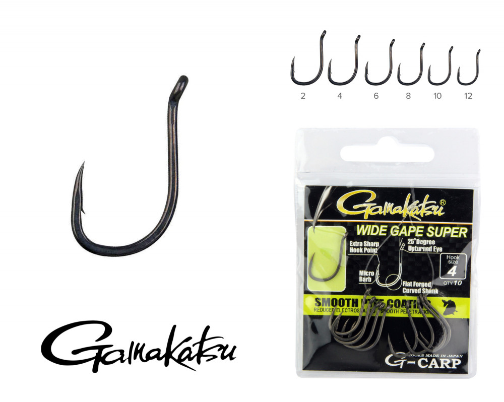 Gamakatsu G-Carp Wide Gape Super Czarny 4 10szt/opakowanie Z oczkiem Mikro Z zadziorem Haczyk karpiowy
