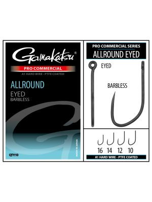 Jak sama nazwa wskazuje, Allround Eyed to bardzo uniwersalny model, oparty na Gamie 2260 i wykonany z drutu A1. Ten bezzadziorowy haczyk może być używany przez cały rok do praktycznie każdego rodzaju przynęty. Dzięki temu jest idealnym haczykiem do wędkowania, gdzie występuje mieszanka gatunków i rozmiarów zdobyczy. Dzięki oczku ten haczyk jest łatwy do wiązania. Pozwala to na używanie twardych przynęt w połączeniu z taśmą na przynęty, stoperem lub pętlą. Powoli zakrzywiony punkt zapewnia doskonałe trzymanie dla każdej zahaczonej ryby. Średni wybór drutu umożliwia dość wrażliwą prezentację przynęty i oferuje tę dodatkową siłę, która jest potrzebna podczas holu bonusowych ryb. Powłoka PTFE zwiększa wskaźnik penetracji i utrzymuje grot niezwykle ostry. Opakowanie: 10 sztuk.