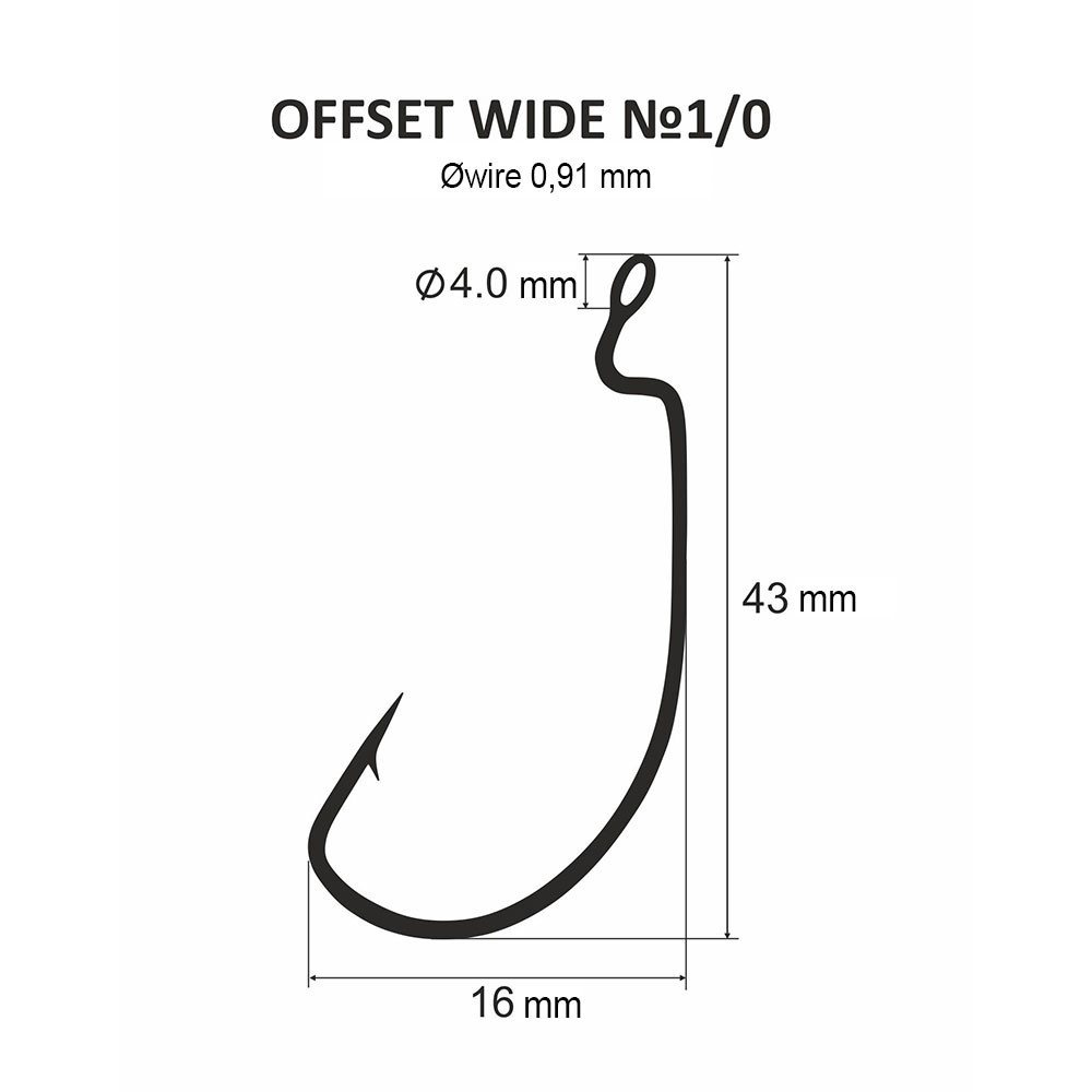 Kształt łuku haka jest specjalnie zaprojektowany, dzięki czemu chemicznie ostrzone, ekstremalnie ostre ostrze haka można łatwo ukryć w przynęcie. Aby zwiększyć odporność na obciążenia, 2/3 długości haka zostało wykute. Hak jest pokryty specjalną powłoką antykorozyjną (czarny chrom), dzięki czemu można nim bez problemu łowić w słonej wodzie. Konstrukcja haka offsetowego Dnipro-Svinets umożliwia stabilne trzymanie każdego rodzaju silikonowej przynęty, dzięki czemu można spokojnie łowić w wodach pokrytych najgęstszą roślinnością bez ryzyka utraty przynęty.