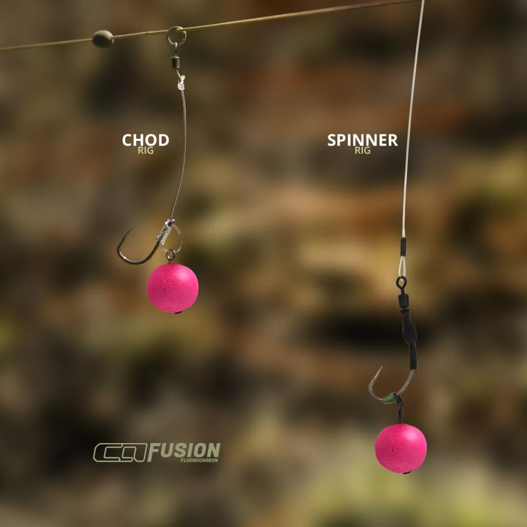 Niezbędny element zestawów CHOD i SPINNER. Jedną z dużych zalet prawdziwego fluorocarbonu jest to, że w krystalicznie czystych wodach można na niego złowić większe, ostrożne karpie. Wykonany jest z umiarkowanie twardego materiału fluorocarbonowego, który dobrze znosi zaciskanie i jest odporny na uszkodzenia spowodowane zaczepami.