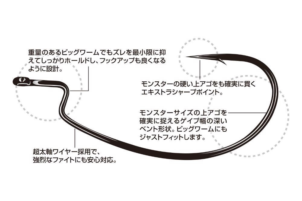 Dzięki konstrukcji haczyka offsetowego idealnie nadaje się do ukrytego, bezzaczepowego prezentowania miękkich przynęt, takich jak gumowe rybki i plastikowe robaki.