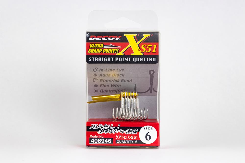 Package contents: Decoy Quattro X-S51 #2 Eared Barbed Quadruple Hook 6pcs