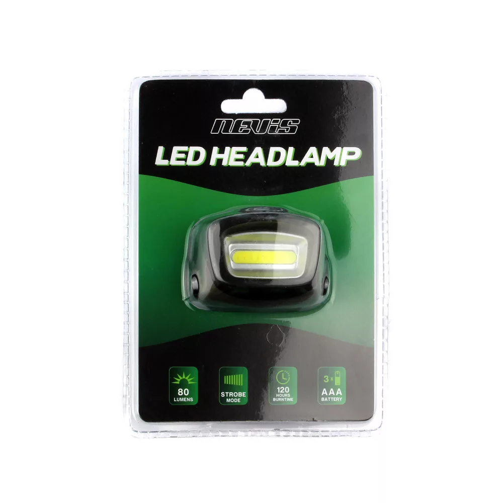 Latarka czołowa NEVIS to wysokiej jakości latarka czołowa z diodami LED, której górny przełącznik umożliwia ustawienie dwóch różnych poziomów jasności, a także światła migającego. Jasność wynosi 80 lumenów.