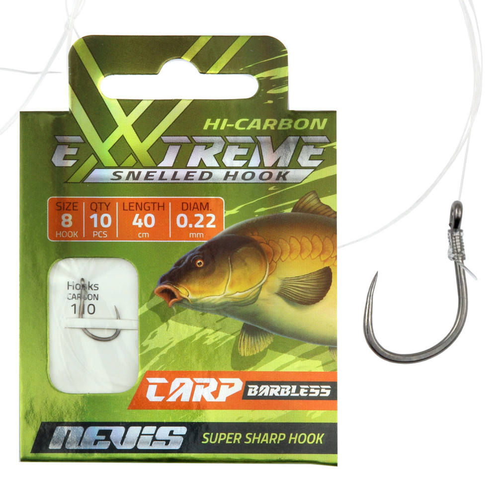Nevis 4 Bezzadziorowy, z oczkiem 40cm 0,25mm Monofilamentowy Haczyk Karpiowy z Przyponem 10szt.