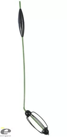 Dzięki sile wyporu korpusu pływaka podwodny pływak ustawia się pod kątem ok. 45°, długi trzonek (30 cm) podnosi haczyk, który unosi się w chmurze uwalnianej zanęty. Zestaw nie tonie nawet na błotnistym dnie. Zestaw mocujemy po prostu od strony żebrowanego koszyczka do żyłki głównej.