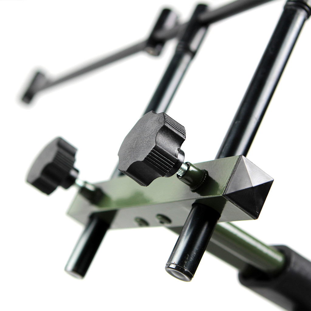 Rama jest dwukierunkowo wydłużana, co ułatwia doskonałe rozmieszczenie wędek. Czteronogi system stały jest bardzo stabilny, całkowicie eliminując luz statywu. Wysokość poprzeczek jest również regulowana za pomocą dużych śrub regulacyjnych. Pokryliśmy go grubą, odporną na promieniowanie UV warstwą farby, która chroni go przed szkodliwym działaniem czynników atmosferycznych przez długi czas. Sprzedawany jest w wytrzymałej torbie transportowej.