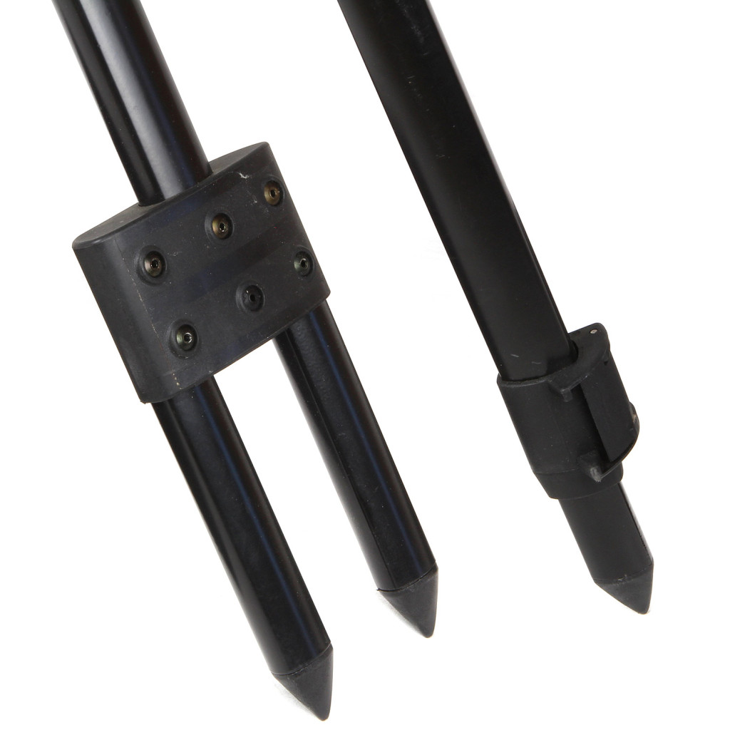 Nogi można wysuwać na dużą długość, regulując je w zakresie 100–180 cm, dzięki czemu można je bezpiecznie ustawić na niemal każdym rodzaju brzegu. Kąt nóg jest regulowany w szerokim zakresie, z małymi stopniami, co pozwala łatwo wyeliminować nierówności terenu. Poprzeczka ma szerokość 40 cm, co jest idealne do stabilnego umieszczenia wędek. Rod pod został wykonany w wersji na 2 wędki, dzięki czemu można na nim bezpiecznie używać dwóch wędek jednocześnie.