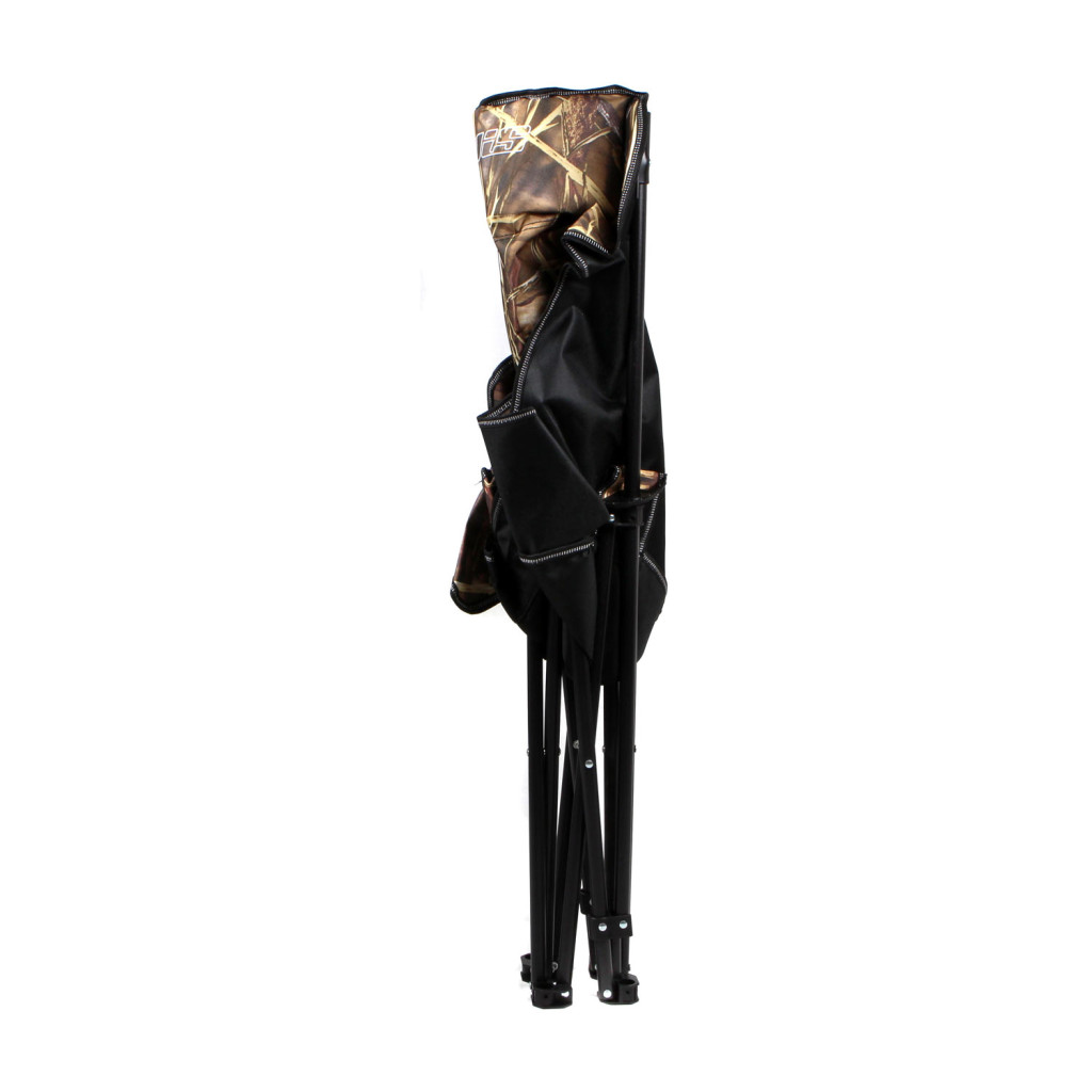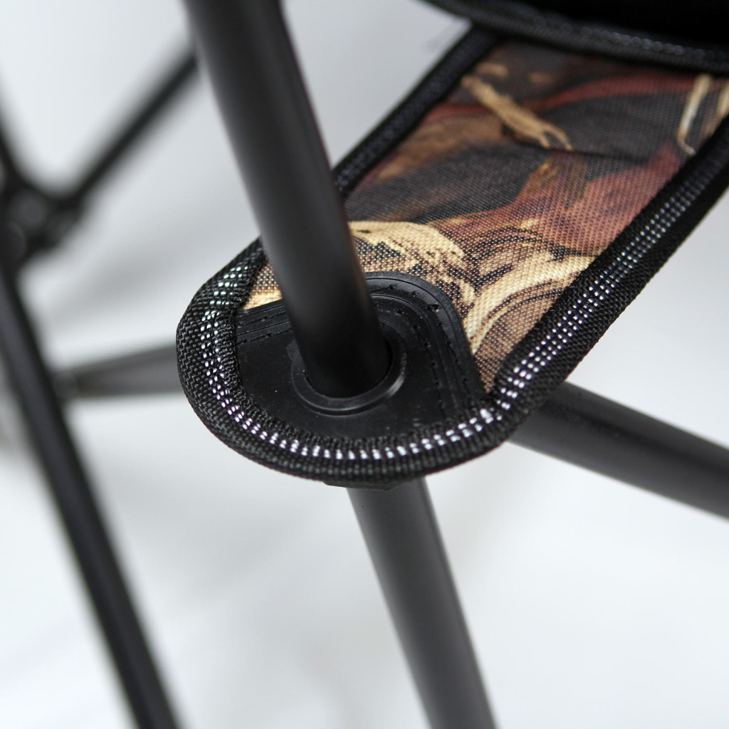 Pokrycie to 1600D Oxford Nylon, który jest niezwykle mocny, odporny na ścieranie i gwarantuje długą żywotność. Kamuflażowe płótno jest nie tylko wytrzymałe, ale także zapewnia dyskretny wygląd, idealnie pasując do naturalnego otoczenia. Waga krzesła wynosi 2,1 kg, co zapewnia stabilność, a jednocześnie jest ono nadal łatwe do przenoszenia.