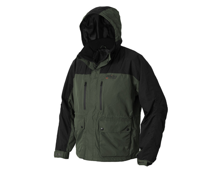 Odzież z serii Pro jest wysokiej jakości, czego potrzebuje każdy wędkarz. Zewnętrzna warstwa kurtki Delphin CRUISER Pro wykonana jest z materiału Polyester 320D Taslon. Od wewnątrz na materiał naniesiono powłokę PU, wszystkie szwy są podklejane. Wskaźnik słupa wody materiału wynosi 5000mm, a jego oddychalność 3000g/m2/24h. Te parametry doskonale nadają się do naszych warunków pogodowych, odzież Pro doskonale wytrzymuje i chroni nawet podczas obfitego deszczu. Kaptur jest regulowany za pomocą gumki, można go zrolować i zabezpieczyć rzepem. Duży zamek błyskawiczny jest zakryty listwą, która zapobiega przedostawaniu się zimna i wody, a także może być zabezpieczona rzepami w pięciu miejscach. Mankiety z gumowymi zatrzaskami można ściągnąć za pomocą rzepów. Na piersi znajdują się dwie kieszenie z wodoodpornymi zamkami. Wewnątrz tych kieszeni znajduje się ciepły materiał polarowy. Główne kieszenie również mają wewnątrz materiał polarowy, co czyni je idealnym miejscem do ogrzania dłoni. Kieszenie te są podwójne, a przednia część jest zakryta szeroką listwą i dwoma zatrzaskami. Wewnątrz znajdziesz wewnętrzną kieszeń na piersi na wartościowe przedmioty, takie jak telefon, dokumenty, klucze itp. Ta kieszeń jest wyposażona w zamek błyskawiczny. Kurtkę można ściągnąć w pasie i u dołu. Na plecach kurtki, pod kapturem, znajduje się plastikowy pierścień D do zawieszania, na przykład podbieraka. Kurtka Delphin CRUISER Pro jest dostępna w kolorze zielono-czarnym. Jej parametry z pewnością docenią nie tylko wędkarze, ale także myśliwi i wszyscy, którzy lubią przebywać na łonie natury. Podczas prania zalecamy użycie specjalnego detergentu do odzieży funkcyjnej, w maksymalnej temperaturze 40oC, nie wykręcać i w razie potrzeby użyć środka impregnującego, który odnowi wodoodporną powierzchnię (DWR) na zewnętrznym materiale. Odzież z serii Pro jest wysokiej jakości, czego potrzebuje każdy wędkarz. Spodnie Delphin CRUISER Pro w kombinacji kolorów zielono-czarnym zapewniają doskonały komfort i ochronę przed deszczem, wiatrem i zimnem. Regulowane szelki można odpiąć, a z przodu znajdują się dwie boczne kieszenie na zamek błyskawiczny, chronione listwą. Zewnętrzny materiał to Polyester 320D Taslon z naniesioną powłoką PU, o wskaźniku słupa wody 5000mm i oddychalności 3000g/m2/24h. Oznacza to, że będziesz doskonale chroniony nawet podczas obfitego deszczu. Te parametry są idealne do naszych warunków pogodowych dla komfortowego przebywania na łonie natury. Powłoka doskonale chroni przed wodą z zewnątrz, ale umożliwia ucieczkę pary wodnej z ciała. Oczywiście wszystkie szwy są podklejane. Na dole nogawek znajduje się zamek o długości 35cm, który po otwarciu znacznie poszerza nogawki, dzięki czemu można je zdjąć lub założyć, nawet jeśli masz na nogach solidne buty lub kalosze. Ponadto na dole nogawek znajdują się paski na rzepy, za pomocą których można je ściągnąć wokół butów. W zestawie znajduje się również pas o szerokości 4 cm z plastikowym klipsem, na którym przyszyty jest pierścień D, na przykład do zawieszania kluczy. Zamek błyskawiczny w kroku jest dodatkowo zabezpieczony zatrzaskami. Jedną z największych zalet spodni Delphin CRUISER Pro jest wyściełanie kolan i siedziska. Kilkumilimetrowa warstwa termoizolacyjna i wodoodporna zapewnia komfort podczas siedzenia lub klęczenia na zimnej i mokrej ziemi, trawie itp. Z pewnością docenisz tę ochronę termiczną podczas siedzenia w łodzi. Spodnie zapewniają doskonały komfort noszenia i doskonałą ochronę w złej pogodzie, w kombinacji zielono-czarnej, którą docenią nie tylko wędkarze, ale także miłośnicy aktywności na świeżym powietrzu. Podczas prania zalecamy użycie specjalnego detergentu do odzieży funkcyjnej i w razie potrzeby użycie środka impregnującego, który odnowi wodoodporną powierzchnię (DWR) na zewnętrznym materiale.