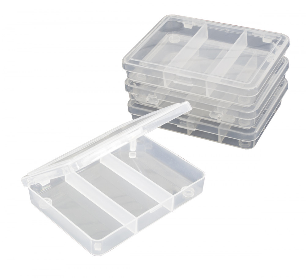 We can put rubber beads, small snaps, or swivels into separate compartments.Its simple plastic fasteners are not fragile and are made of good quality plastic.