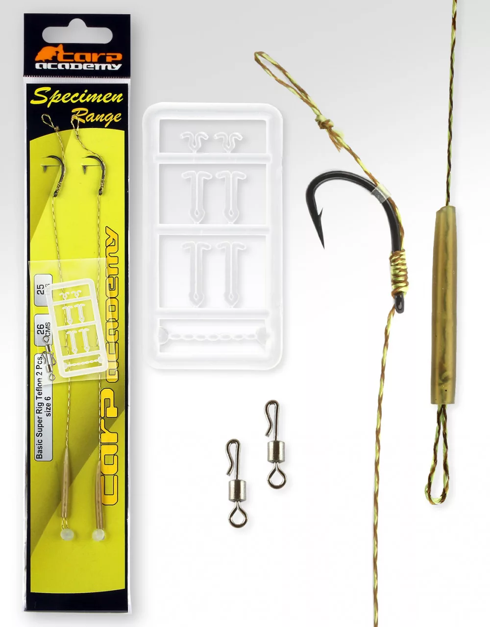 Carp Academy Basic Super Rig Teflon Czarny 6 2 szt./opakowanie z oczkiem z zadziorem pleciony haczyk z przyponem