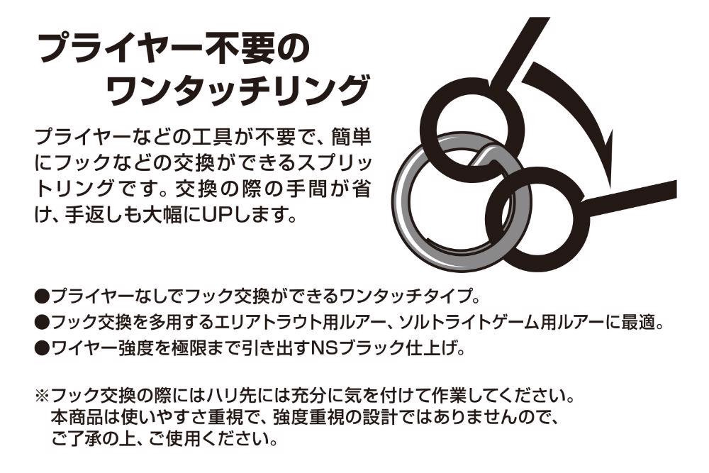 Jako członek serii R-7 Quick Ring, jego specjalnie zaprojektowany kształt umożliwia błyskawiczną wymianę przynęt i przyponów, minimalizując straty czasu i maksymalizując przyjemność z wędkowania.