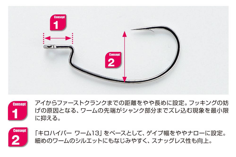 Dzięki specjalnemu kształtowi offsetowemu przynęta idealnie przylega do haka, ukrywając jego grot i minimalizując w ten sposób ryzyko zaczepienia.