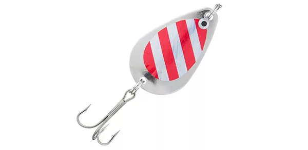 Kamasaki DP błystka wahadłowa - Błystka wahadłowa ma większą powierzchnię niż zwykle, a jej ruch jest szczególnie widowiskowy. Jej skuteczność wynika z różnych trybów prowadzenia, które mogą obejmować nawet duże zrywy. Można z powodzeniem zastosować również efekt opadającego liścia, zatrzymując ją podczas zwijania, a także dobrze reaguje na zmiany prędkości.