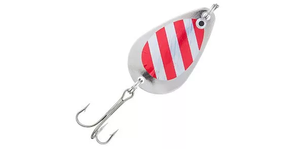 Kamasaki DP błystka wahadłowa - Błystka wahadłowa ma większą powierzchnię niż zwykle, a jej ruch jest szczególnie widowiskowy. Jej skuteczność wynika z różnych trybów prowadzenia, które mogą obejmować nawet duże zrywy. Można z powodzeniem zastosować również efekt opadającego liścia, zatrzymując ją podczas zwijania, a także dobrze reaguje na zmiany prędkości.