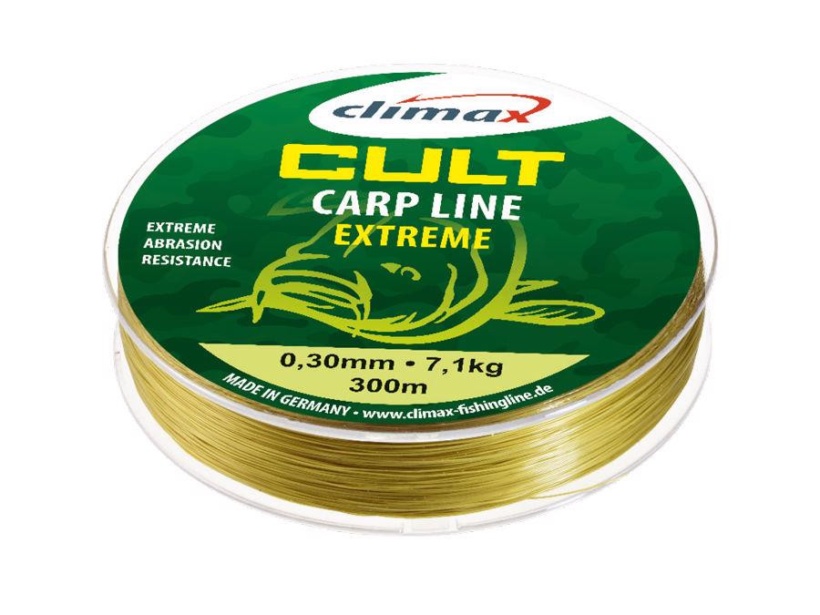 Package contents: Climax Cult Carp Extreme Mono 1000m 0,30mm Matt Olive Monofilament Mainline