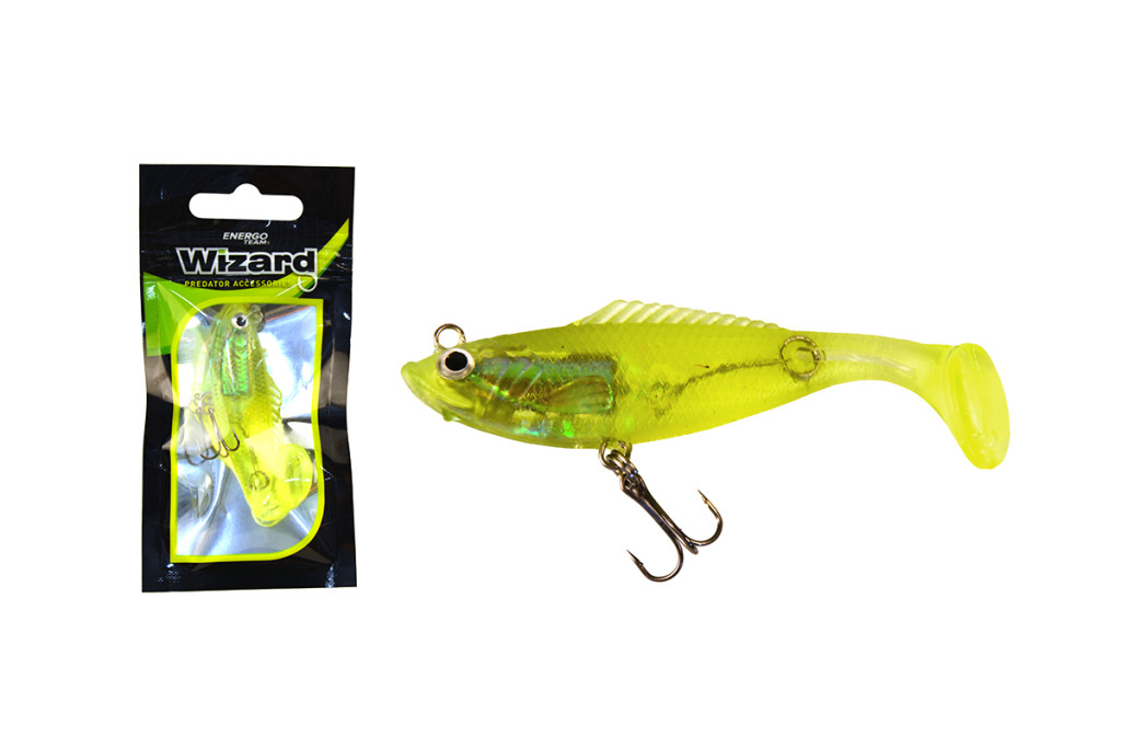 Sama część gumowej rybki jest odpowiednio miękka, a rzucające się w oczy, mocne kolory drażnią drapieżnika i prowokują go do brania.